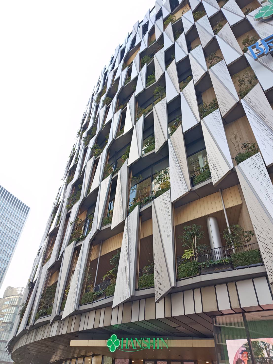 植物の植わっているプランターを複合ビルに設置しています。